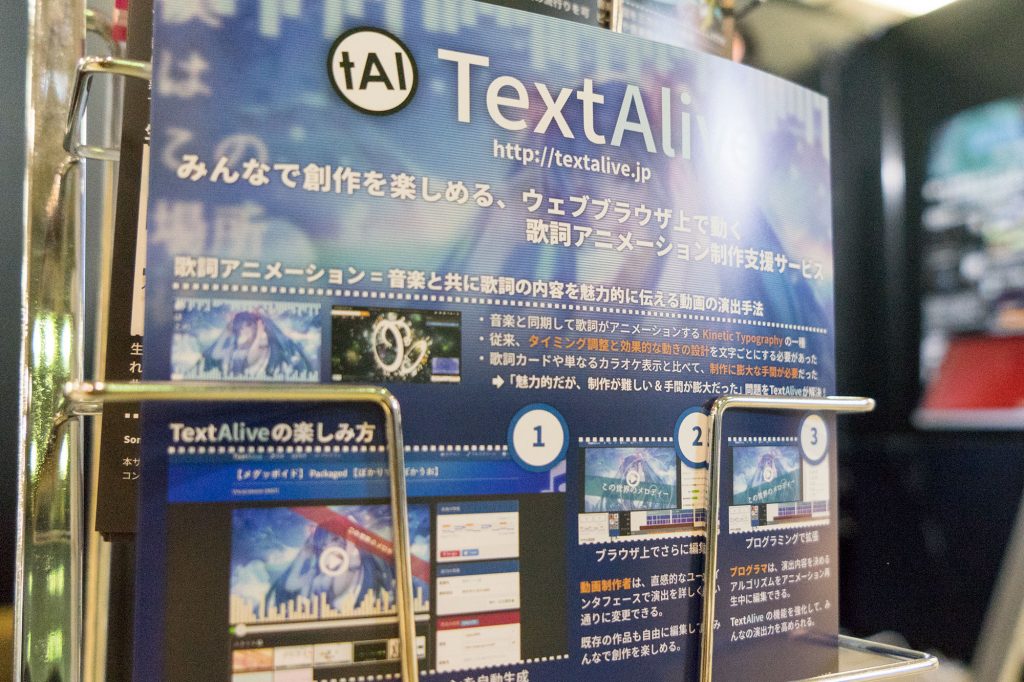 2016年10月14日から16日まで、札幌で開催される国際コンベンション「No Maps」の「Trade Show」に産業技術総合研究所のブースを出展します。TextAliveもその一環で展示され、歌詞アニメーション作品を楽しんだり、歌詞アニメーションの作り方を見たりすることができます。